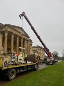 Go behind the scenes of a major restoration as Cybele and Juno are reinstated on Stowe House’s South Front portico.